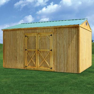 The Side Utility model features the industry standard gable roof and side entry doors. It is available in 8', 10' and 12' widths (14' & 16' widths available in some areas, based on hauling restrictions). The 8' wide model features a single wood door, the larger models include a double wood door. Windows are not included.