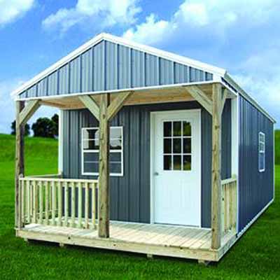 The Cabin is stylish and practical. It is available in 10' and 12' widths (14' and 16' widths available in some areas) with a gable style roof. Features for all models include a 36" 9-lite door, 3-2'x3' windows, and a 4' front porch. It is an ideal solution for a small office, or playhouse. For more upper storage space and cabin style consider the Lofted Barn Cabin.